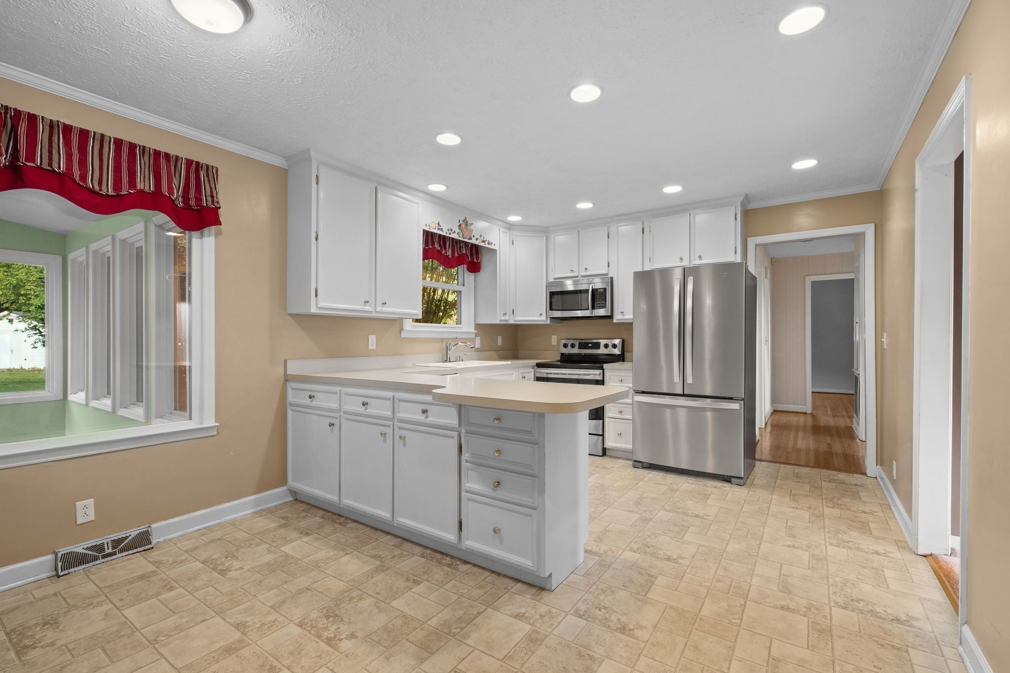 - Range, Dishwasher, Disposal, Microwave, Refrigerator