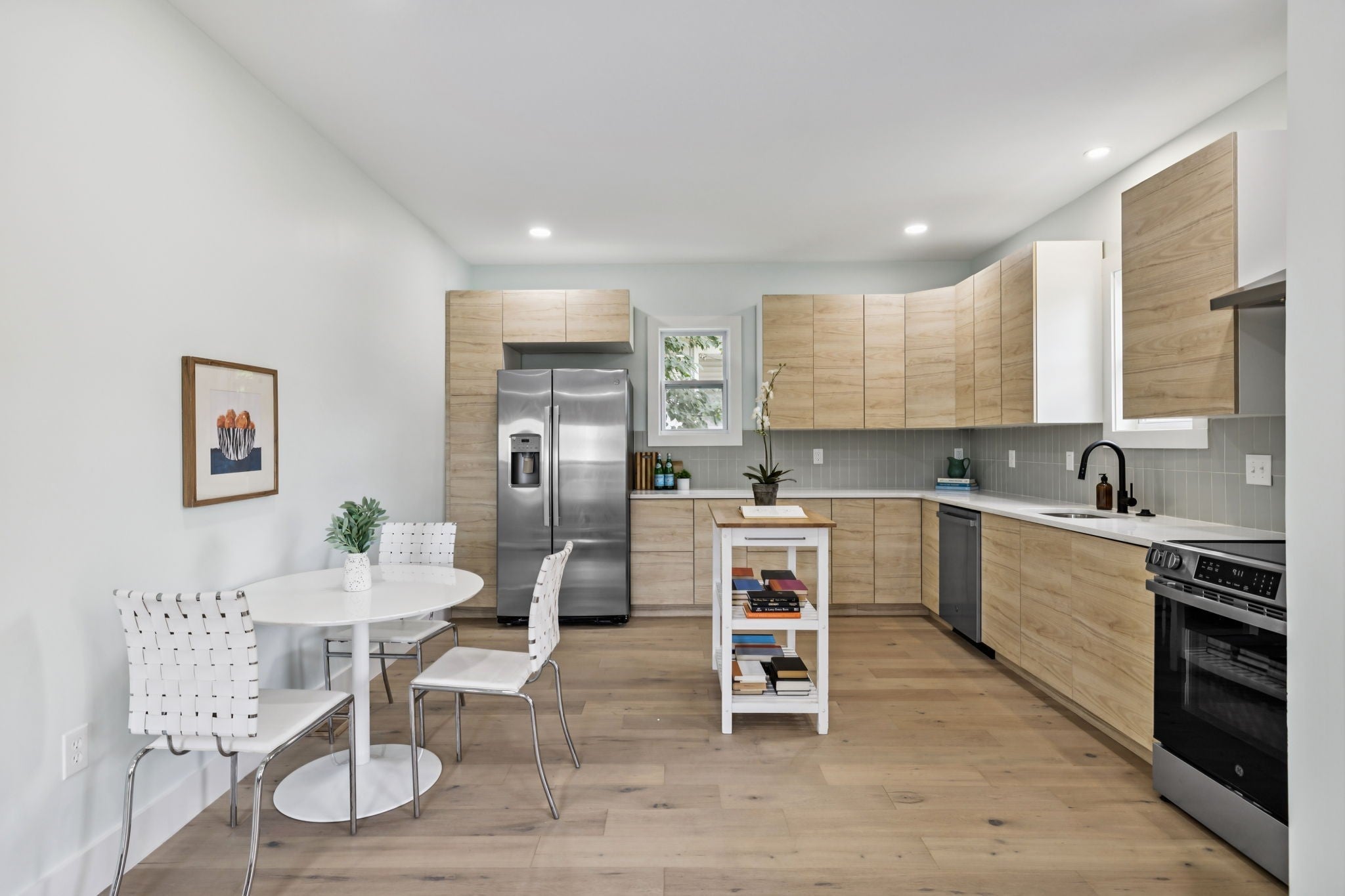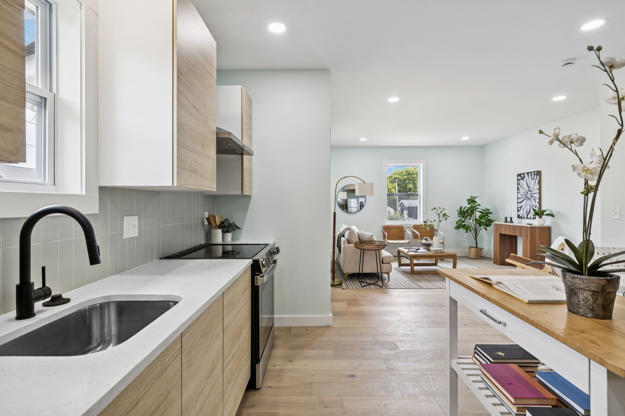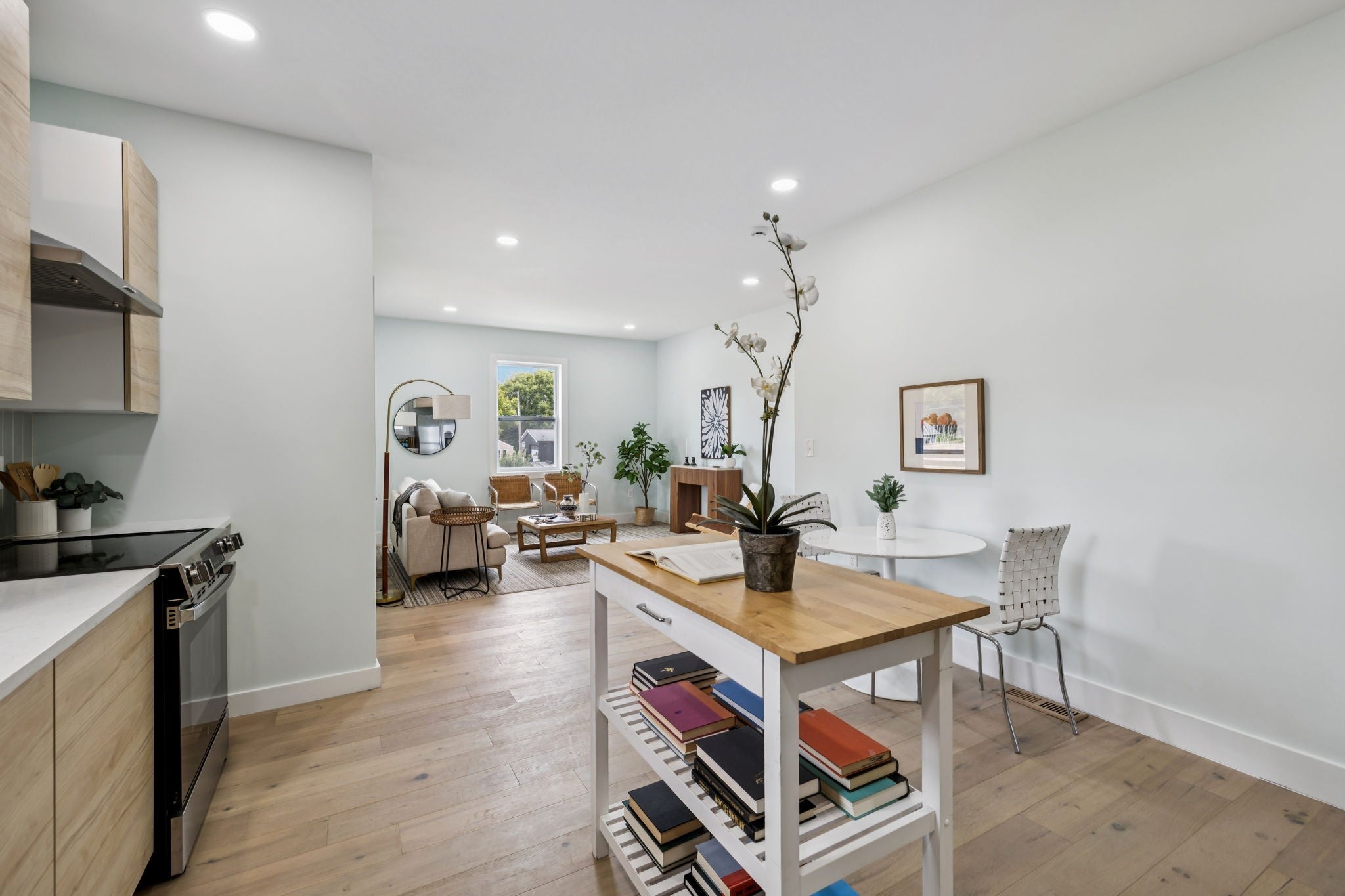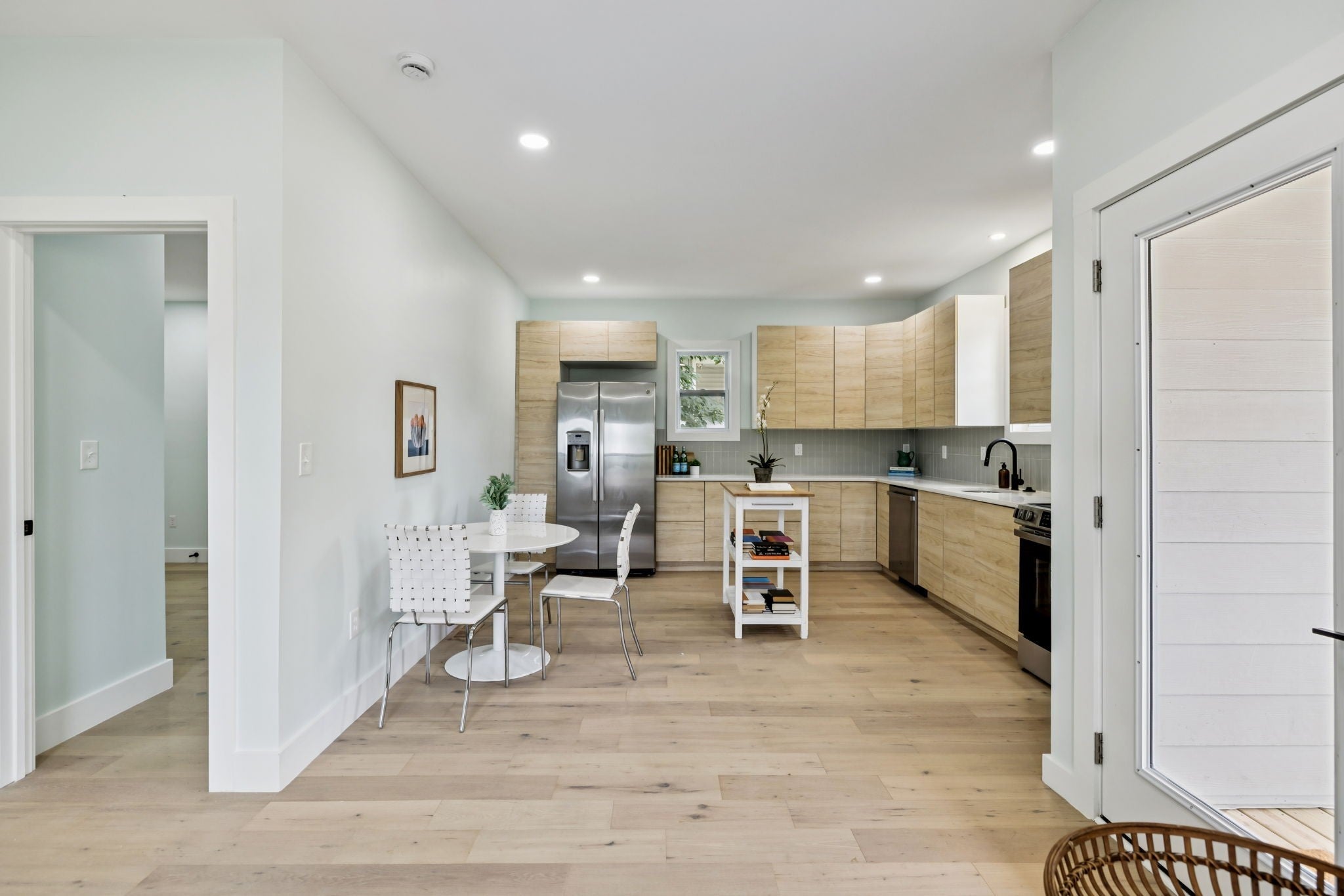 Non-Owner Occ AirBnB Eligible! Zoned 0R20, this home can even operate as a small business or office. Lots of options! Step into a stunningly updated 2-story home with 3 bedrooms and 2 baths, where modern upgrades meet classic Nashville charm. This features an inviting front porch, perfect for morning coffee or evening relaxation, then enter into a bright open-concept living space filled with natural light and stylish finishes. The kitchen is a showstopper with sleek flat-panel cabinetry, stainless steel appliances, quartz countertops, and an eat-in dining area ideal for entertaining. The spacious primary suite features a walk-in closet and a spa-like en suite bath with a custom tiled shower and contemporary vanity. Enjoy thoughtful details throughout — from designer lighting to wide-plank hardwood floors. Upstairs offers an additional bedroom or flex space, giving you room to grow, work, or relax. Conveniently located just minutes from downtown Nashville, Geodis Park, shopping, and dining, this move-in ready home is the perfect blend of comfort and convenience.