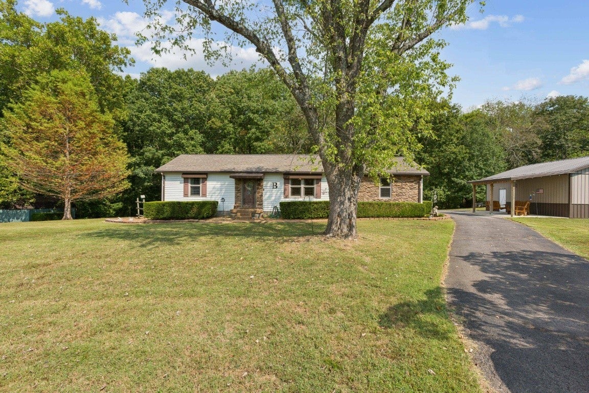 Open House Sunday, Sept 21st from 2 to 4. Charming 3 Bedroom Ranch in a Country setting only 20 minutes from Downtown Nashville, Discover the perfect balance of country & convenience in this beautiful ranch style home nestled on a beautiful treed lot. With timeless curb appeal, stone accents and mature landscaping, this property offers the charm of country while only being a short 20 minute drive to Downtown Nashville. Inside you will find a great split bedroom floor plan, with lots of natural light and large rooms. Outdoor living shines here with a spacious 16x20 screened-in deck, ideal for entertaining or simply relaxing and enjoying the view of the beautiful backyard. Home offers a large 24x24 carport area attached to the home plus a beautiful detached 24x30 garage that has it's own quaint porch area. This home is the perfect retreat for those seeking country charm, practical living space and the convenience of being just a short drive from the interstate shopping and Nashville.