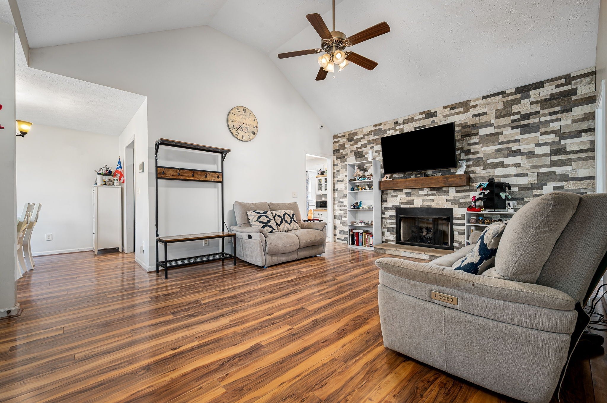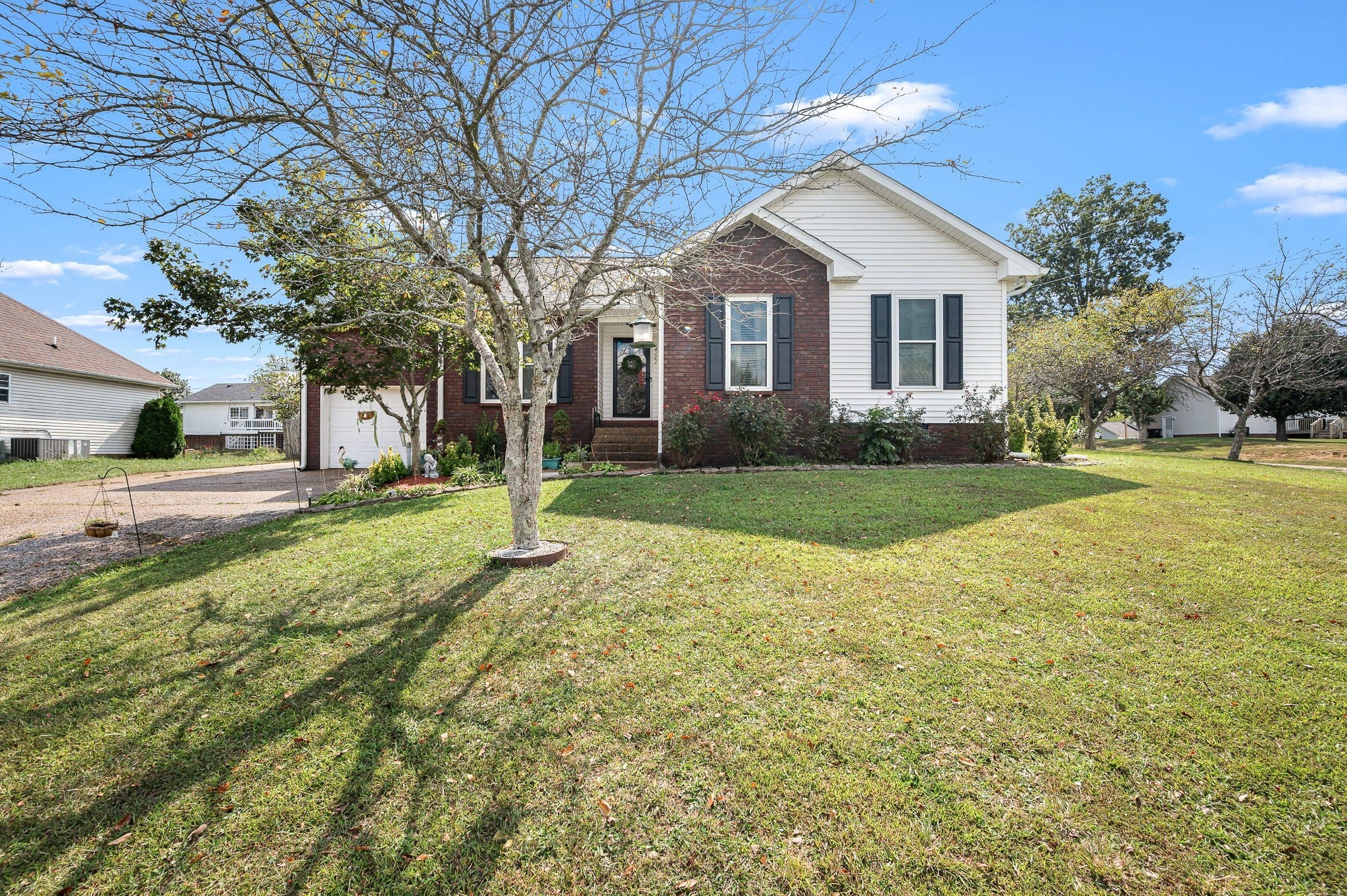 Thoughtfully updated home situated on a large corner lot in the the heart of Goodlettsville! Move-in ready complete with new roof, new HVAC, newer windows, extended rear fence, & newly lined crawlspace. This functional floor plan features 3 bedrooms, 2 baths, & spacious bonus room complete with barn doors! The spacious primary bedroom offers an abundance of natural light and two walk-in closets. Impressive primary bathroom with free-standing soaking tub, double vanities with granite counters, large tile shower, and a stone accent wall complete with a fireplace! The large utility room boasts cabinets, a sink, and is accented with shiplap. Relax in the den featuring a vaulted ceiling and beautiful stone accent wall. Oversized storage shed and kitchen fridge remain! (Bonus room photos have been virtually staged)