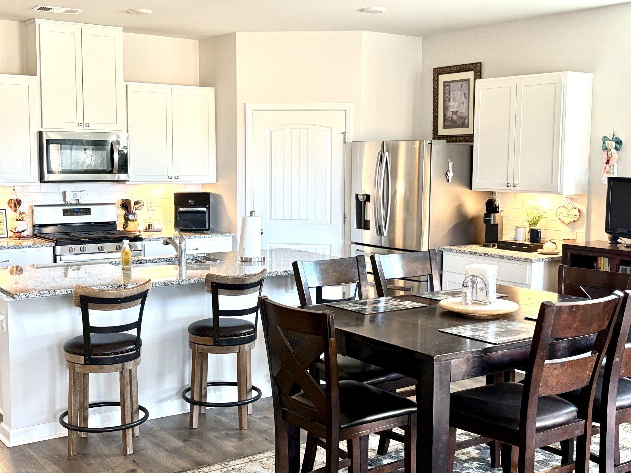 FIRST PHASE HOME WITH CUSTOM UPGRADES! Welcome to Legacy Farms by D.R. Horton! This stunning 4-bedroom, 2-bathroom Dover model is a must-see single-level home with premium features and thoughtful additions.Interior Features:• Spacious open floor plan with a large master bedroom• Upgraded granite countertops, white cabinetry with custom cabinet and drawer pulls, and a stylish kitchen backsplash• Energy-efficient gas tankless water heater• Smart Home technology package included• Exterior Features:•Maintenance-free, fully fenced yard• Front and back covered porches, with a custom $12,000 three-season room that’s fully screened and glassed• $6,000 fence. Durable architectural shingles and James Hardie siding on all four sides with stone/brick accents. Community Amenities:•Resort-style pool and cozy firepit•State-of-the-art clubhouse•2 pickleball courts• Scenic walking trails. This home offers an incredible combination of luxury, convenience, and a vibrant community lifestyle. Don’t miss the chance to own this beautifully upgraded property in Legacy Farms! Schedule your showing today! Pictures are from previous listing. House is not furnished now.