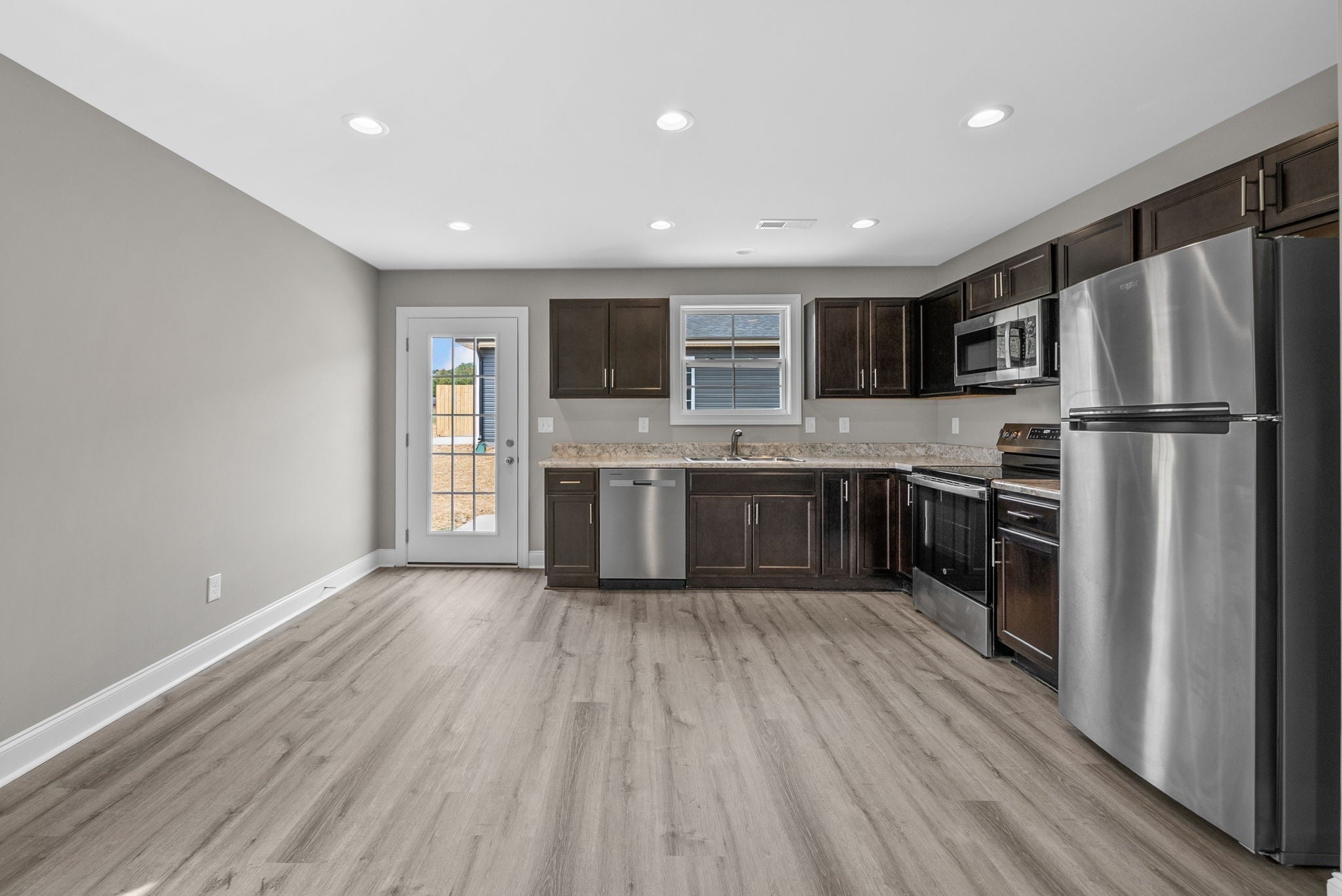 - Electric Oven, Dishwasher, Microwave, Refrigerator, Stainless Steel Appliance(s)