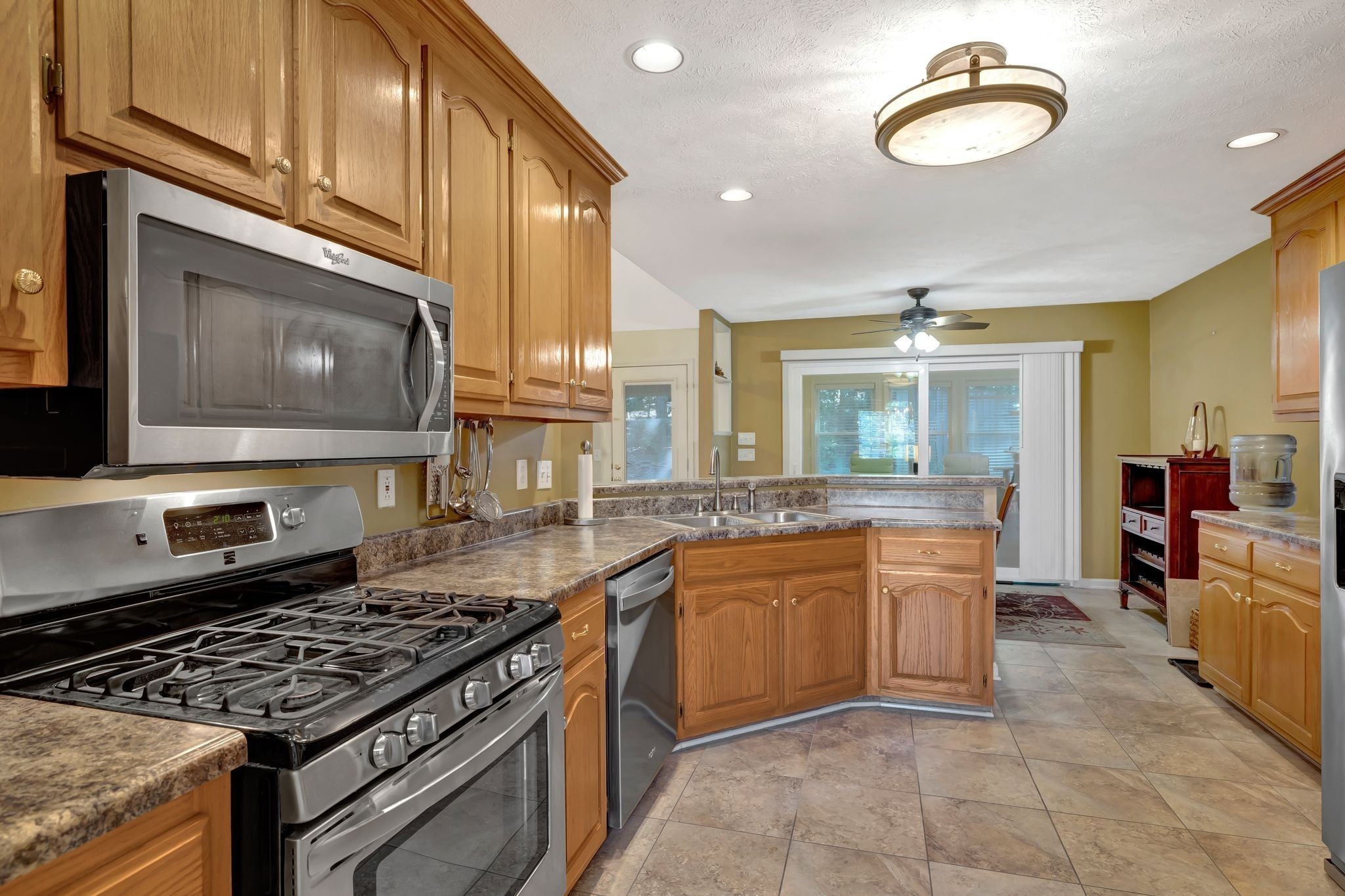- Gas Oven, Gas Range, Dishwasher, Disposal, Microwave, Refrigerator, Stainless Steel Appliance(s)