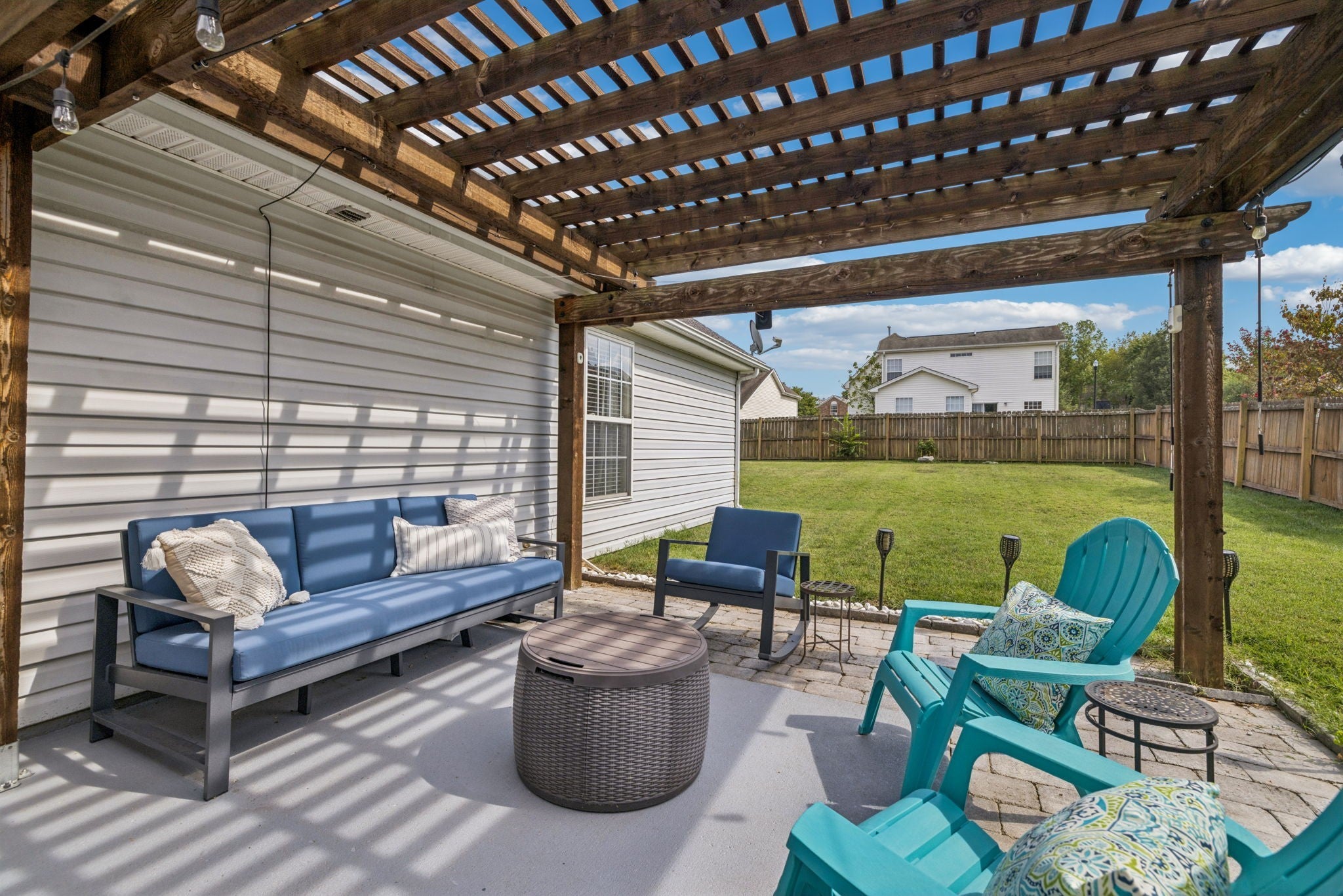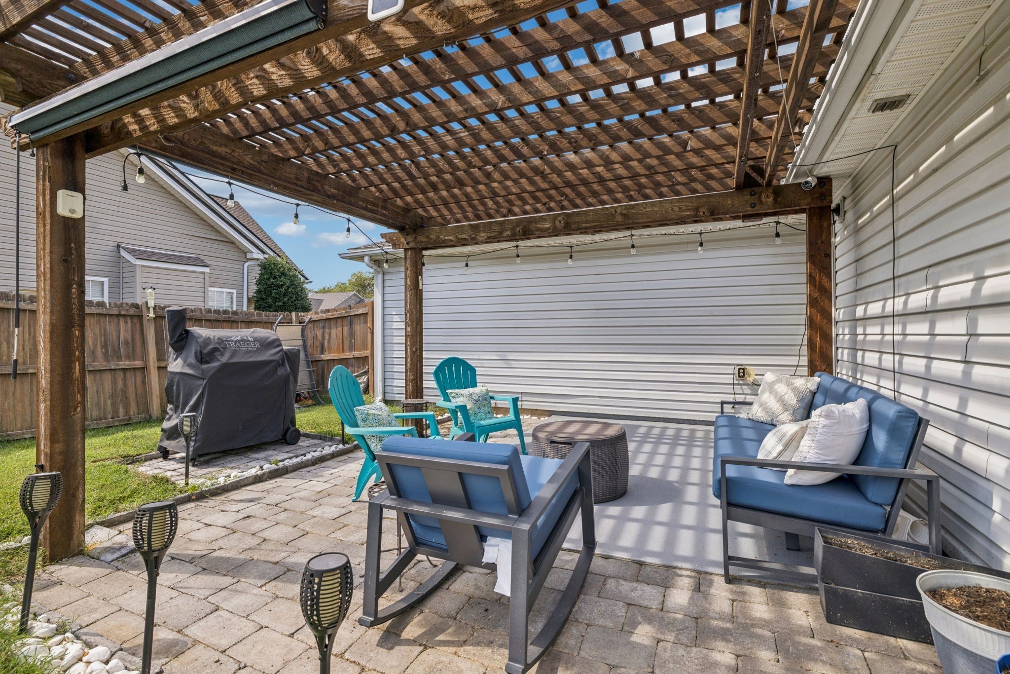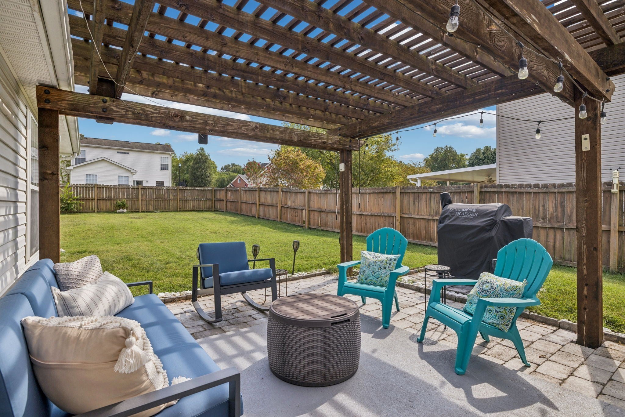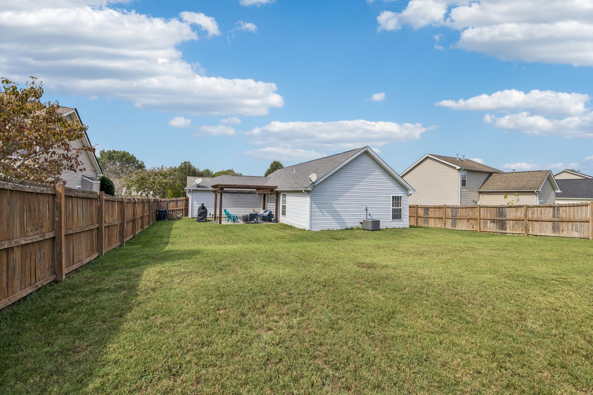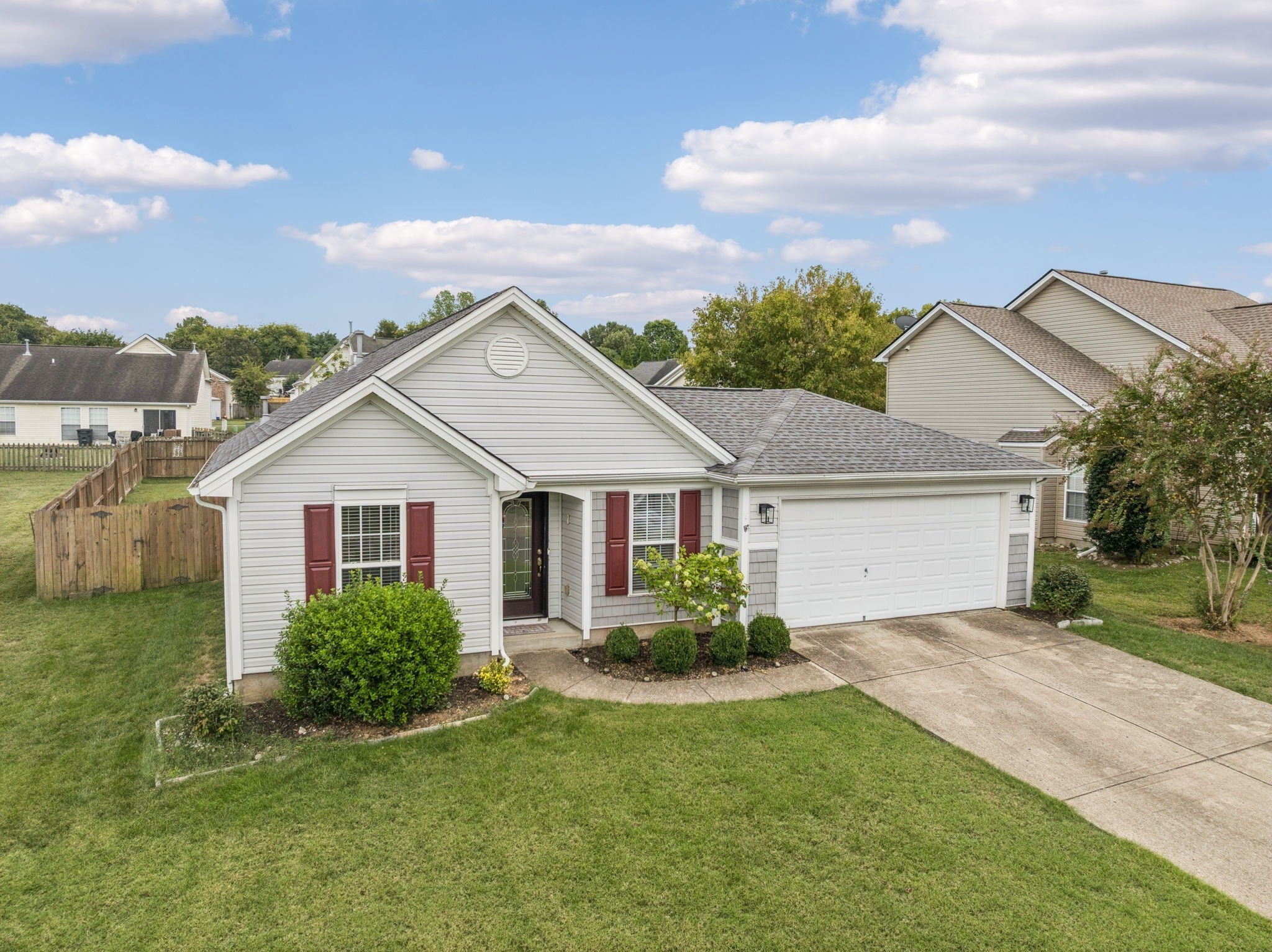 Charming, single-story RANCH home, with a fenced backyard, close to Towhee Golf Course and just 3 miles from I-65. Featuring 2 bedrooms, 2 bathrooms, and a two-car garage, this home has a large living area with fireplace that opens to a spacious flex room that makes a great dining and home office area. Enjoy the large, fenced backyard and beautiful patio with a pergola—perfect for entertaining or unwinding in your private space. This is an incredible opportunity to own a move-in-ready single-family home in a desirable neighborhood in Spring Hill. And yes! The stainless refrigerator does convey!