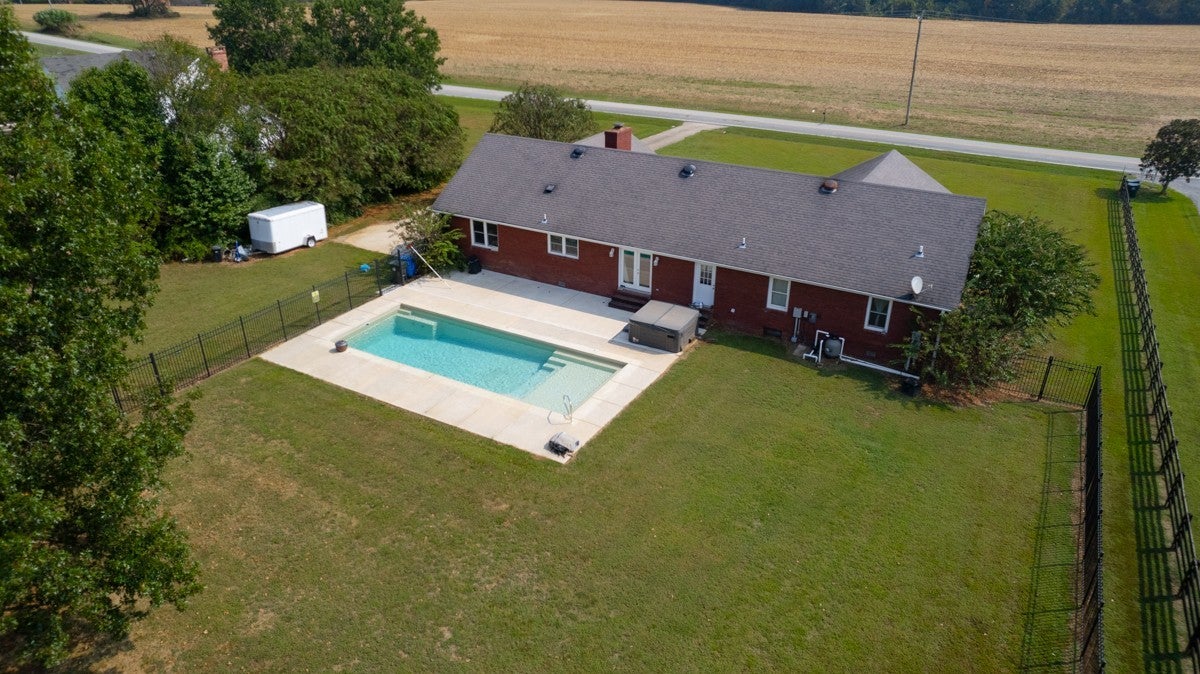 • Beautiful 4 Bedroom, 2 Bath situated on one acre. Both Baths are 3/4. In Suite Master offers a Garden Tub. Secondary Bath has a Tiled Shower. Home offers Well Kept Luxurious Hardwood Flooring, Porcelain Flooring in Office, Kitchen, and Laundry Room which features a Utility Sink and lots of Built-In Cabinets. Double Sub-Floor under all areas with all Porcelain Flooring. Numerous Crystal Light Fixtures in the Ceilings. Cozy Private Office beside Kitchen Area. Eat in Kitchen offers space for large family gatherings with plenty Cabinet Space. Non-Wood Burning Fireplace in Living Room. Fenced in Backyard offers a 14X40 Saltwater Pool. Hot Tub and concrete patio are for your entertaining needs.