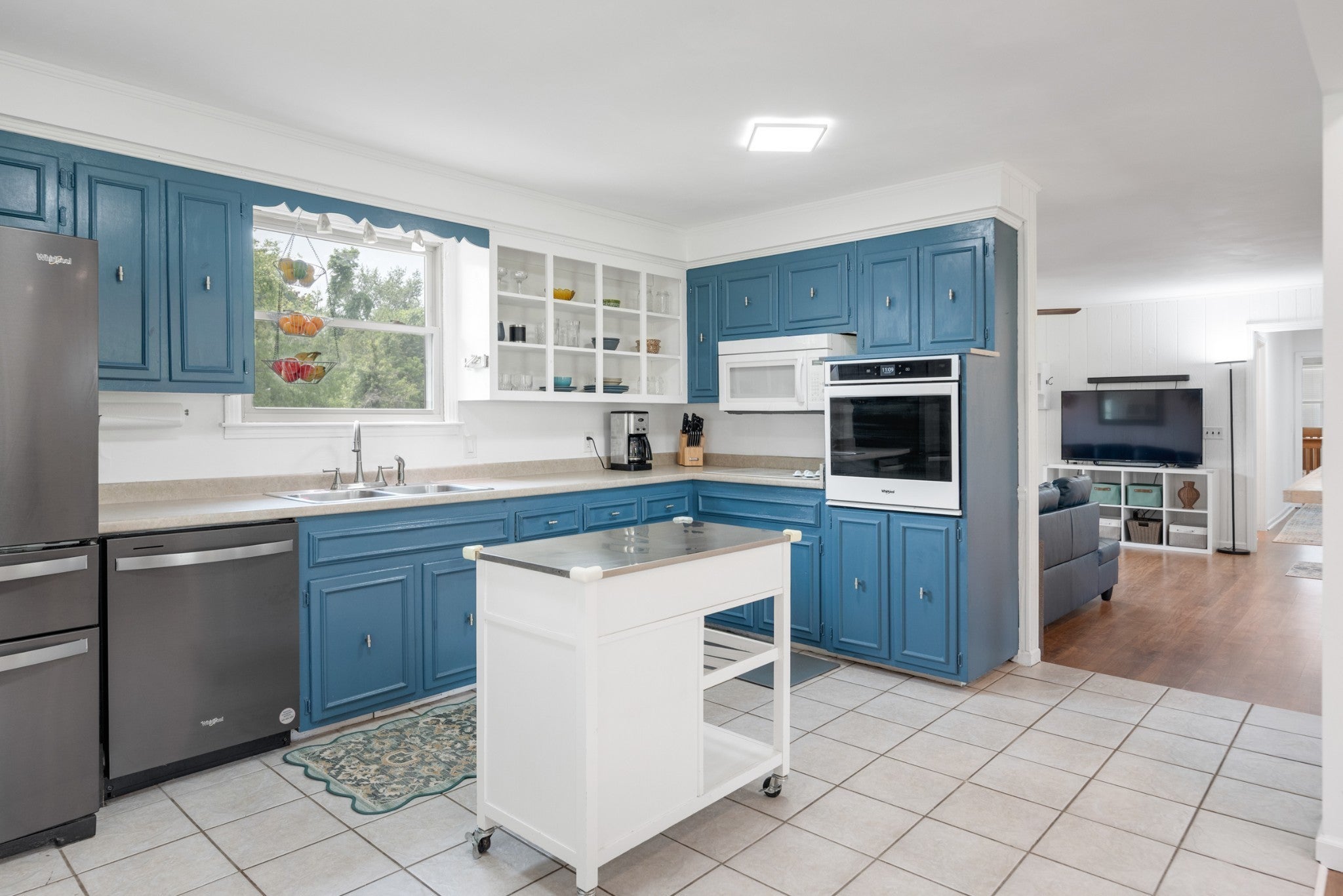 - Built-In Electric Oven, Cooktop, Dishwasher, Dryer, Microwave, Refrigerator, Stainless Steel Appliance(s), Washer