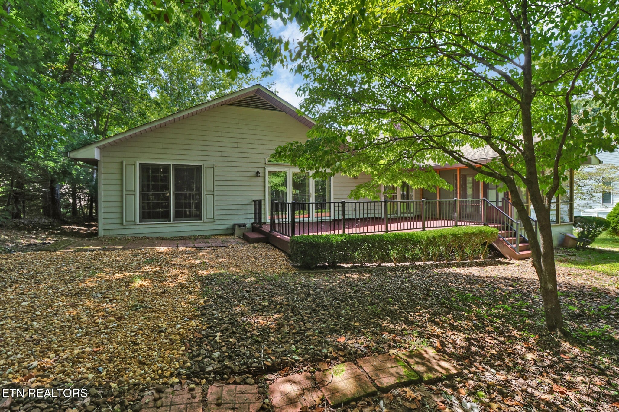 Located in close proximity to the Druid Hill Golf Course with gorgeous mountain vistas, this warm and welcoming ranch-style home has the rustic charm of a mountain retreat. The home features natural wood trim, wood cabinetry and wood flooring that are timeless. The wood beams and shelves along with a stone fireplace and wet bar add visual interest and rustic charm. The home features 3 bedrooms (split) and 2-1/2 baths. The formal living room blends seamlessly with the den. Solid wood pocket doors lead to a formal dining room off the living room. There is also a pocket door that separates the guest wing. This is perfect if you have an elderly parent or adult child living with you - there's room for a sitting area, bedroom and bath. The kitchen is bright and cheery with a skylight and bay window in the breakfast nook. The kitchen features lots of wood cabinetry including a pantry cabinet, solid surface countertops with tile backsplash and hardwood flooring. Down the hallway off the kitchen, the laundry area was relocated to the master bathroom. The water and electric is still there. At the end of the hall is space that could be an office or computer area. There is also access to the master wing through this hall. The master suite features a spacious master closet, master bath with step-in, tile shower, his and her vanities and the washer and dryer. The master bedroom has built-ins and access to a wonderful screened porch (re-screened in 2020). From the screened porch there is access to the large Trex deck (installed in 2020) with just a few steps down to the private back yard. The 2-Car garage has storage and a workshop area. Crawl space is encapsulated with a dehumidifier and sump pump. The hot water heater and HVAC were replaced in Dec, 2024. Please see all updates in the documents. Come take a look!