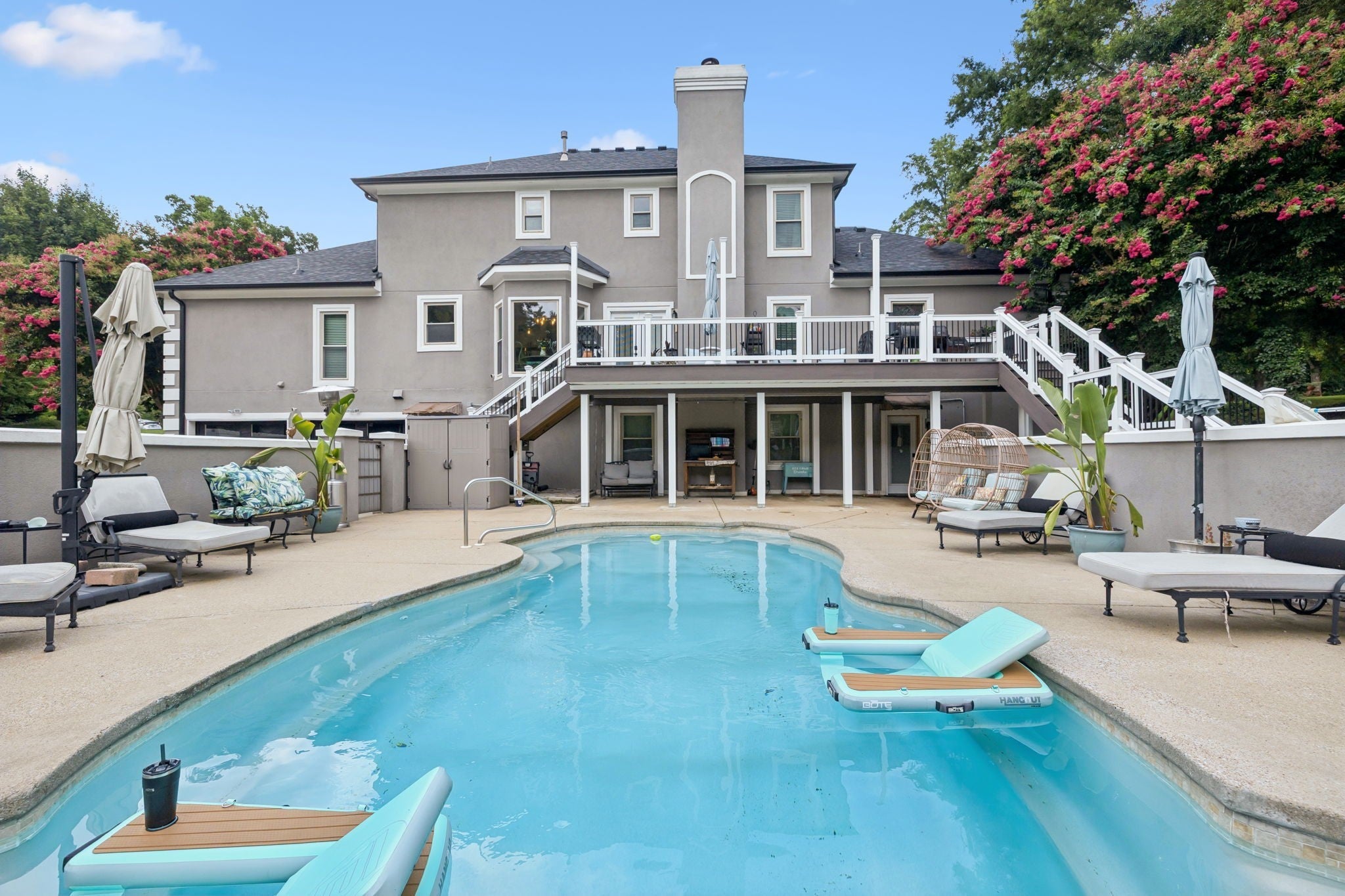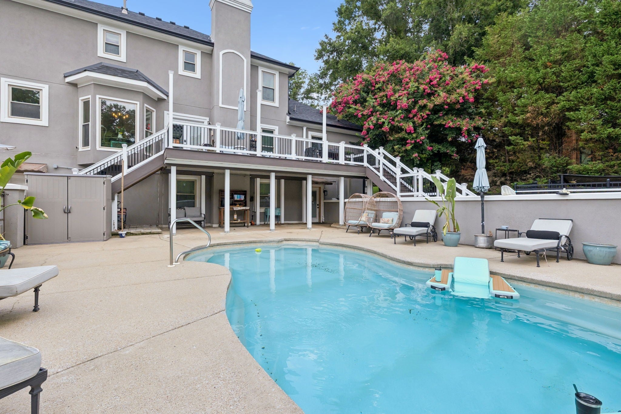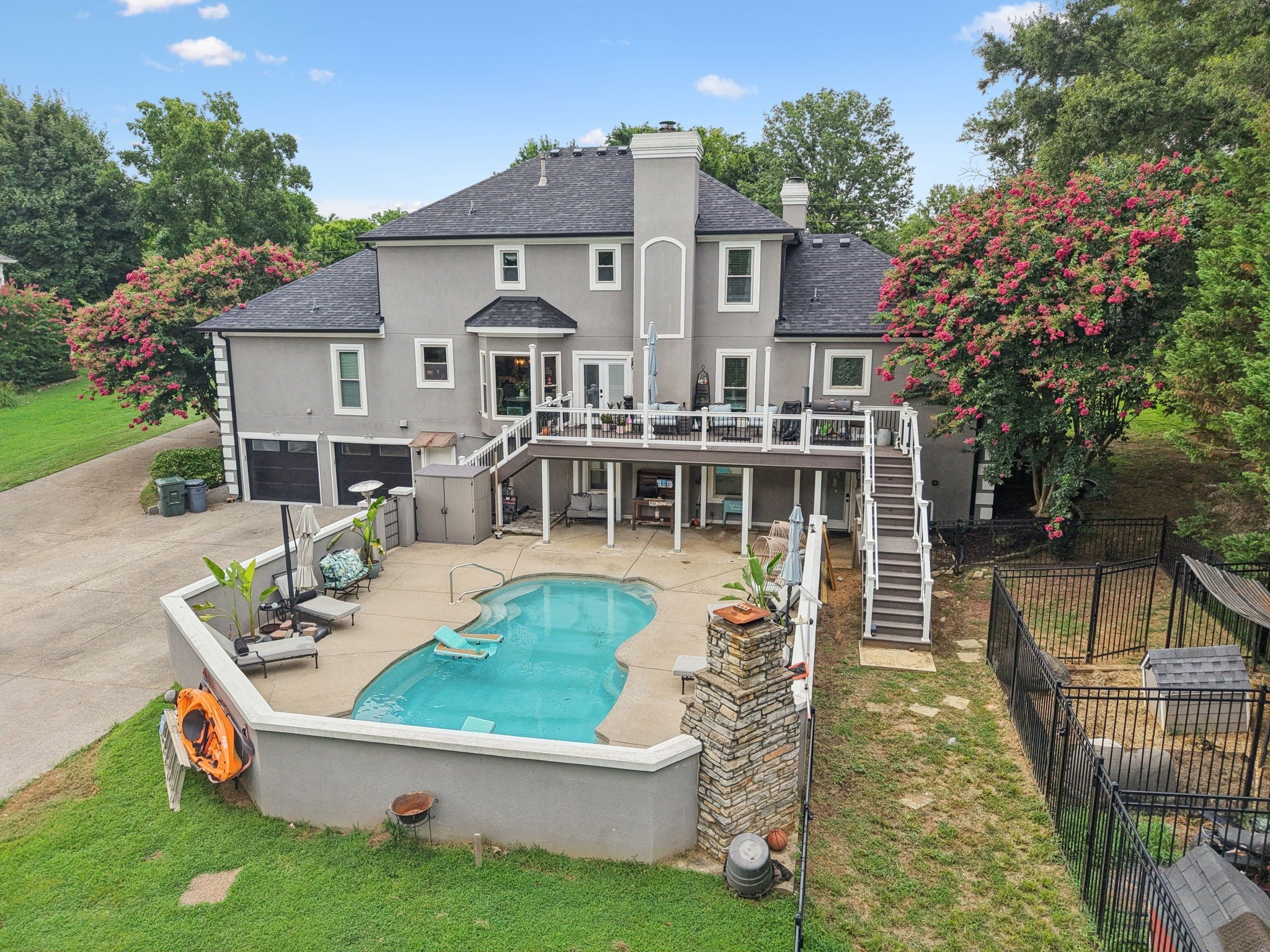 AUCTION Saturday, 10/25/25 @10AM. AUCTION TERMS: $50,000 earnest money deposit required on auction day. 10% Buyers Premium will be added to the final bid * Balance due in 30 days * DISCLAIMER: Property taxes prorated. Real Estate is being sold "as-is." Buyer to perform and verify all due diligence before auction day. Pre-auction offers are welcome! Nestled in a peaceful neighborhood, this beautiful home offers the perfect blend of comfort, convenience, and lake-life living. Home is situated in a neighborhood that is within walking distance to the lake. NEW AND AMAZING kitchen remodel with all the bells and whistles. Custom-made cabinets, an appliance garage to hide appliances that sit on the countertop, a super cool Murphy door that offers storage, a recycle trash can, and also leads to the basement. Huge master bedroom with custom fireplace and new floors. The Master bathroom has also been remodeled with custom finishes and a newly organized closet organizer in the master closet. The foyer area, office, and sitting area have new black and white porcelain tile with a beautiful fireplace in the sitting room Basement area has tons of space for hanging out, with a full bathroom downstairs and a custom-built-in bar area. Now.. you step outside to an in-ground saltwater swimming pool with a fireplace. The yard is fully secluded with tons of space to enjoy the outdoors.