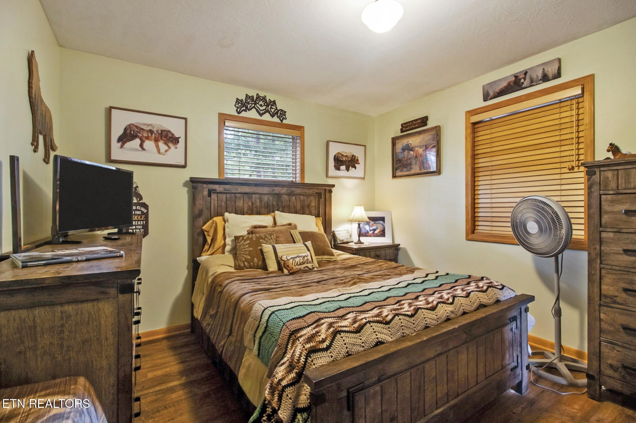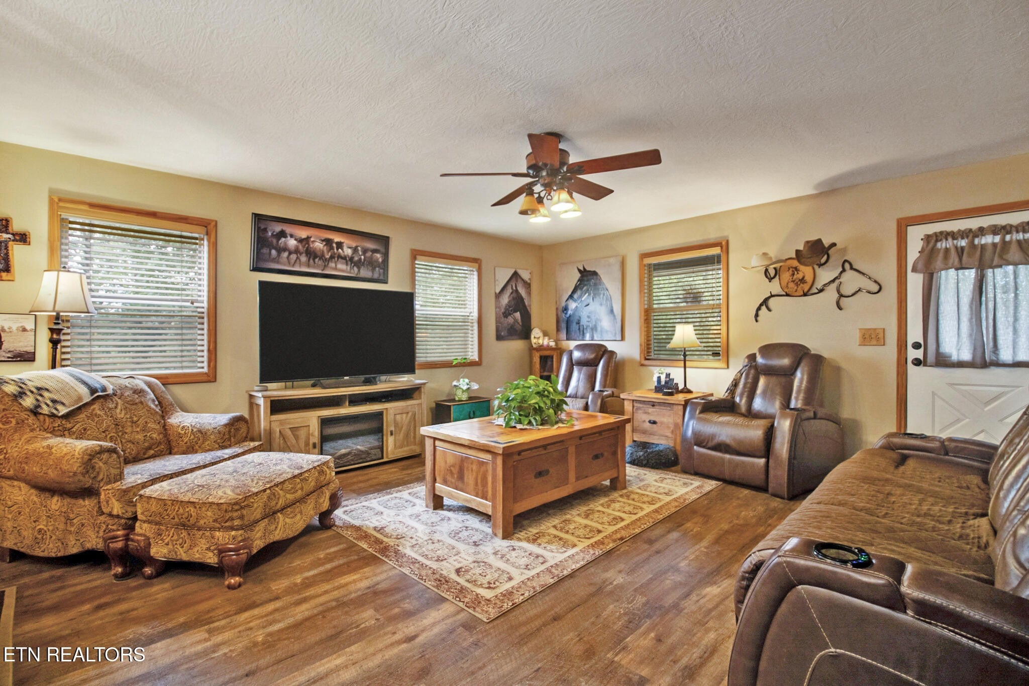 Pretty and cozy 2 bedroom , 2 bath cabin with a bonus room in Spruce Creek Acres Community. This is a horse property with direct access to Big South Fork National Park and community trails. Newly remodeled 3 years ago with a new roof, HVAC, water heater, flooring and fence, and 2 years ago with new paint and staining, new siding and new gutters. Maple cabinets in kitchen with appliances included. 2 barns, run in, and storage shed. The home overlooks 2 fenced pastures. Lovely open front porch and screened back porch. Buyer to verify all dimensions. Seller's agent providing 6 month warranty to buyer.