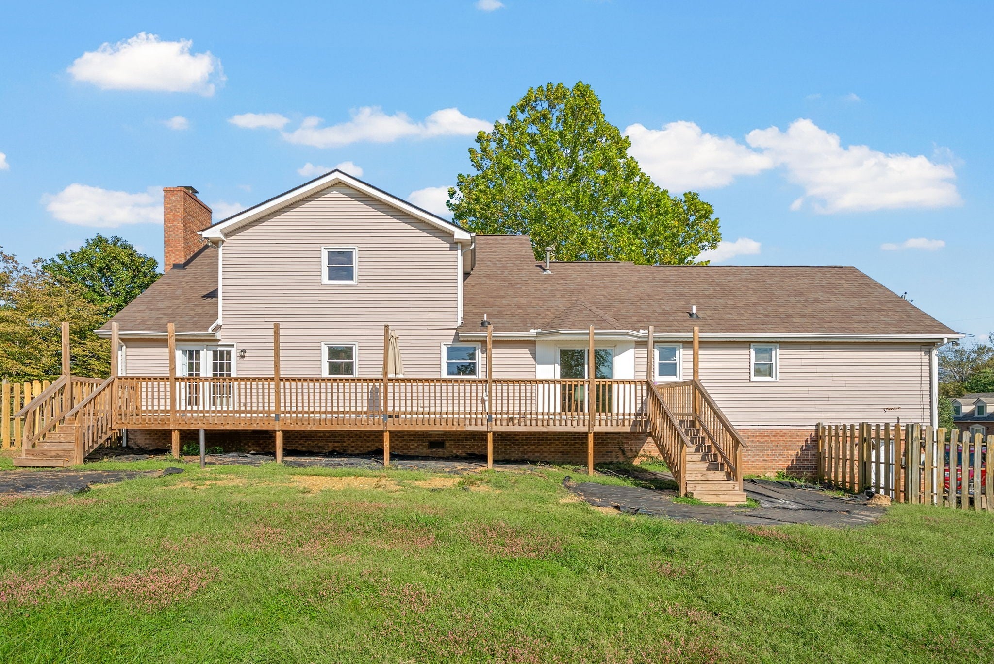 Here is your opportunity to own nearly an acre in the heart of 37043 under $400,000! This stunning partially brick home comes with a fully fenced enormous backyard that features a large back deck, a playset, garden area, and chicken coop, which means, you guessed it, no HOA here! New roof installed last year, as well as new HVAC system 4 years ago, make this home worry free. The floor plan is perfect for those who want separation between the living area, kitchen, and dining, giving each space its own unique and dedicated room. Beautifully painted throughout with modern colors and styles, and fresh carpet on the stairs and upstairs. The biggest primary bedroom you've ever seen is located on the main floor with a versatile office/additional bedroom attached, as well as it's own ensuite. Upstairs has two oversized bedrooms that share a full bathroom with shower/tub combo and plenty of attic storage. Don't forget to check out the below grade two car garage that doubles as extra storage and storm shelter! Located minutes away from all of the conveniences of Wilma Rudolph Blvd, in a quiet subdivision, and zoned for Rossview schools, this home is a 10/10. Don't miss this one!