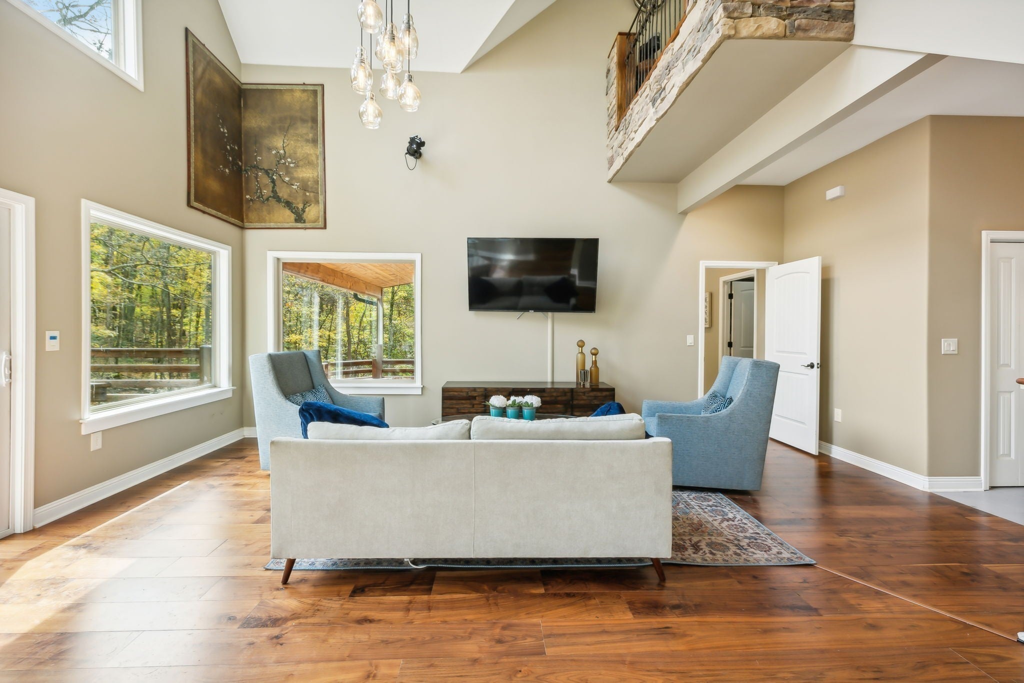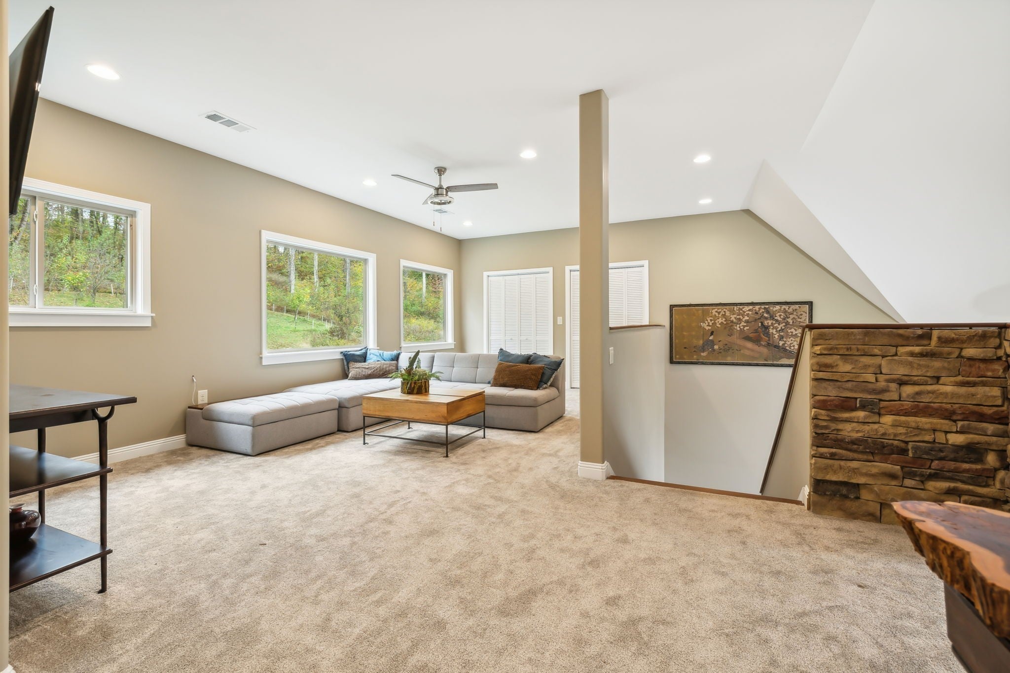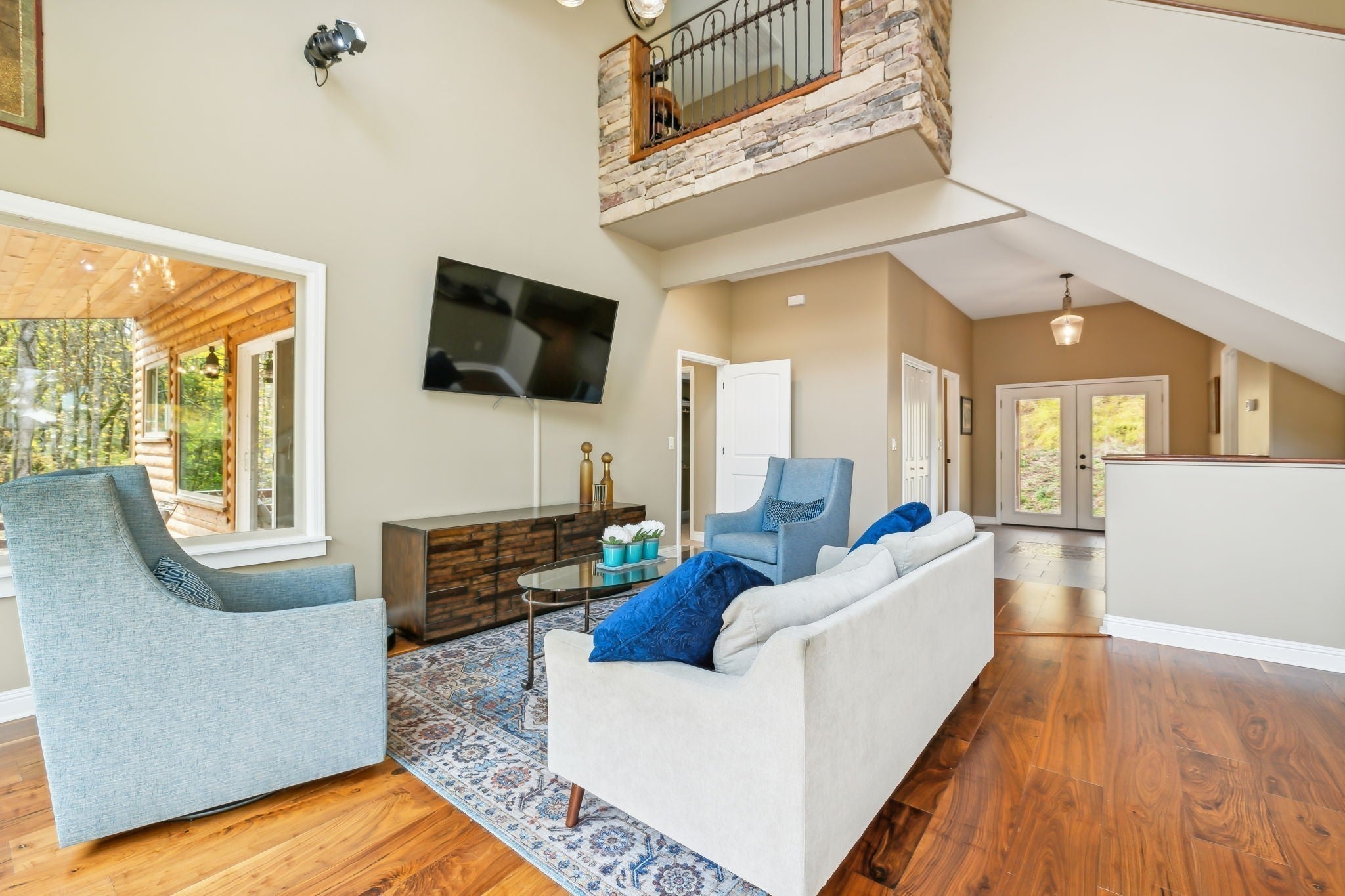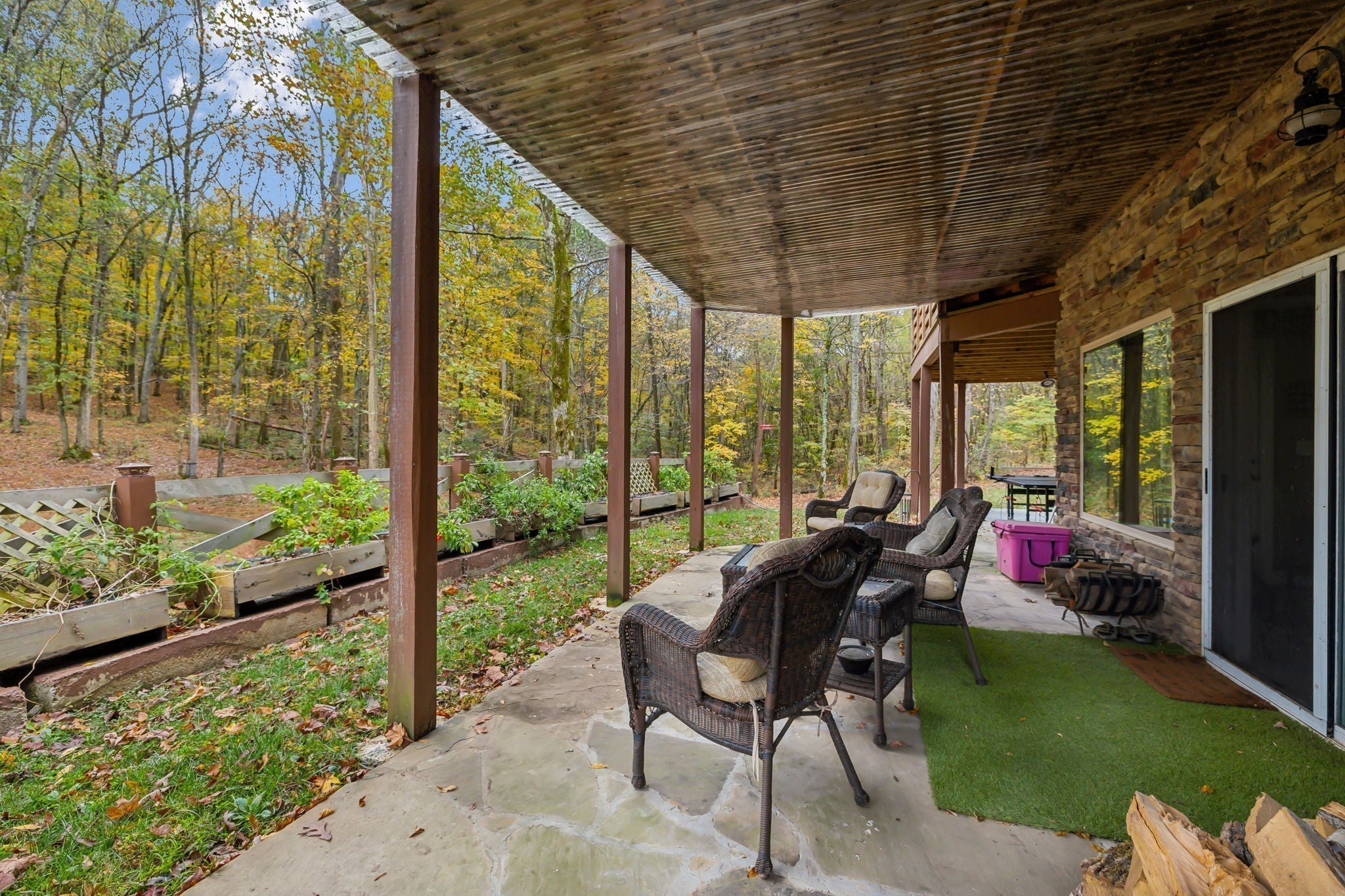 - Stone, Wood Siding
