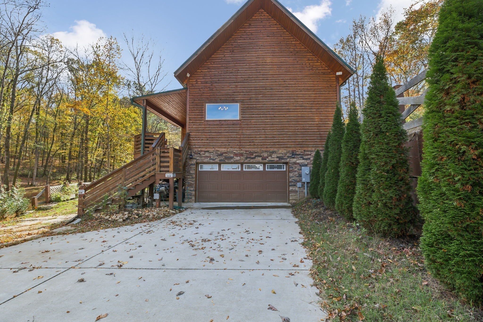 Auction Notice !!! Sunday, Nov. 2nd. @ 1 PM !!! Nestled within a serene, gated community on 5 breathtaking wooded acres, this stunning cedar home tells a story of craftsmanship, heritage, & connection to nature. Step into a world where the soul of Tennessee is captured in every detail. Just a short walk from the lake, this home blend luxurious living with the tranquility of nature. Enter the Great Room where TN black walnut stair rails rise to greet you, custom-milled to showcase the beauty of locally sourced wood. Overlooking this space is a unique coffee nook featuring antique wrought iron, lovingly restored from the property. The natural TN stone walkways, firepit areas & stacked stone around frame & cedar construction merge seamlessly into the lush landscape, creating inviting outdoor spaces for gathering, relaxation, and play. At the heart of this home's outdoor allure are the expansive 800' cedar decks. This remarkable space provides sweeping views inviting you to enjoy al fresco dining, entertaining or simply basking in its peacefulness. It's an ideal setting for enjoying sunlit mornings or starry TN nights, a true extension of the home's warmth & character. Included are thoughtfully crafted amenities: outdoor disc golf meandering through the woods, a shooting range for enthusiasts, and a charming gazebo-covered bridge crossing a gentle creek. The property is a sanctuary of nature's gifts, with a thriving fruit orchard and a 50-foot stretch of hand-crafted vegetable & flower planters, offering seasonal abundance & vibrant colors, harvesting fresh produce right from your own land 0 true gifts from the earth that enrich the home's ambiance and provide an organic farm-to-table lifestyle. For added peace of mind, a cedar-lined safe room stands ready within. 10% Buyers Premium will be added to determine Purchase Price, 10% Down Day of Sale, 30 Day Closing !!!