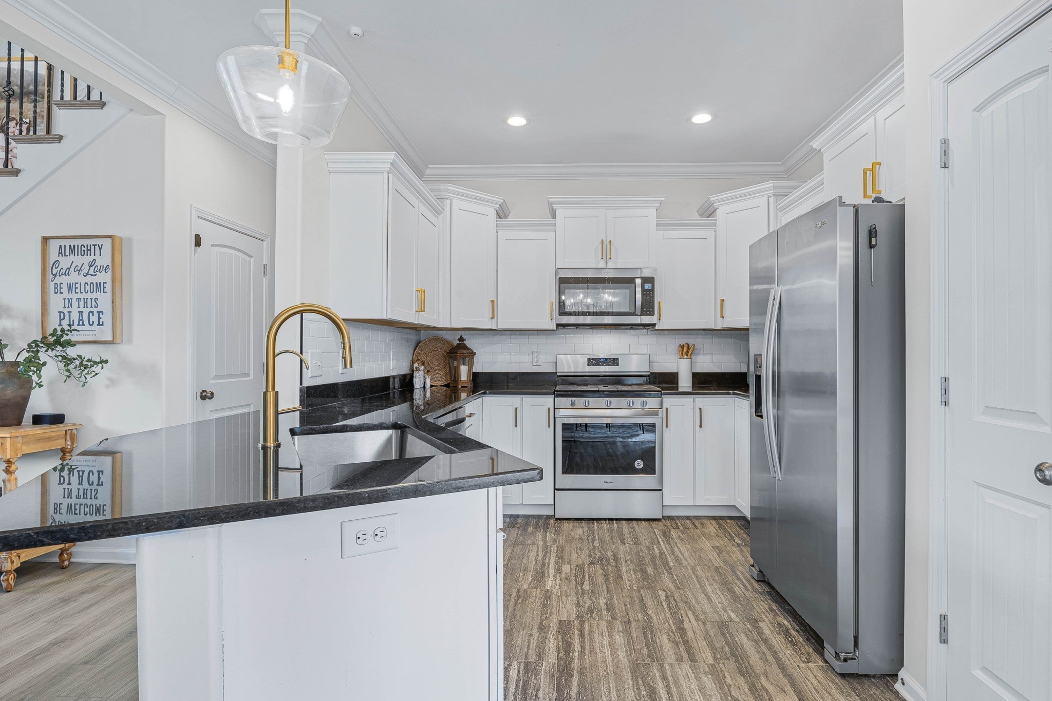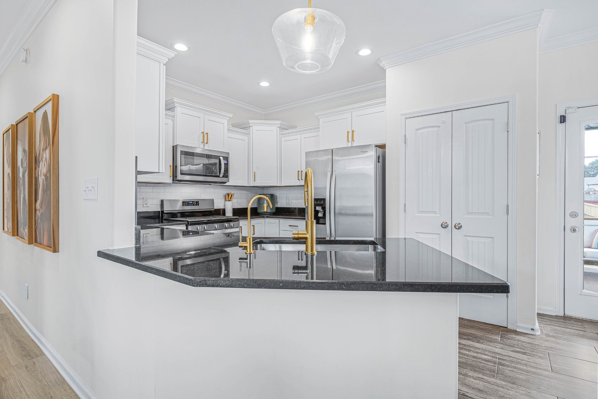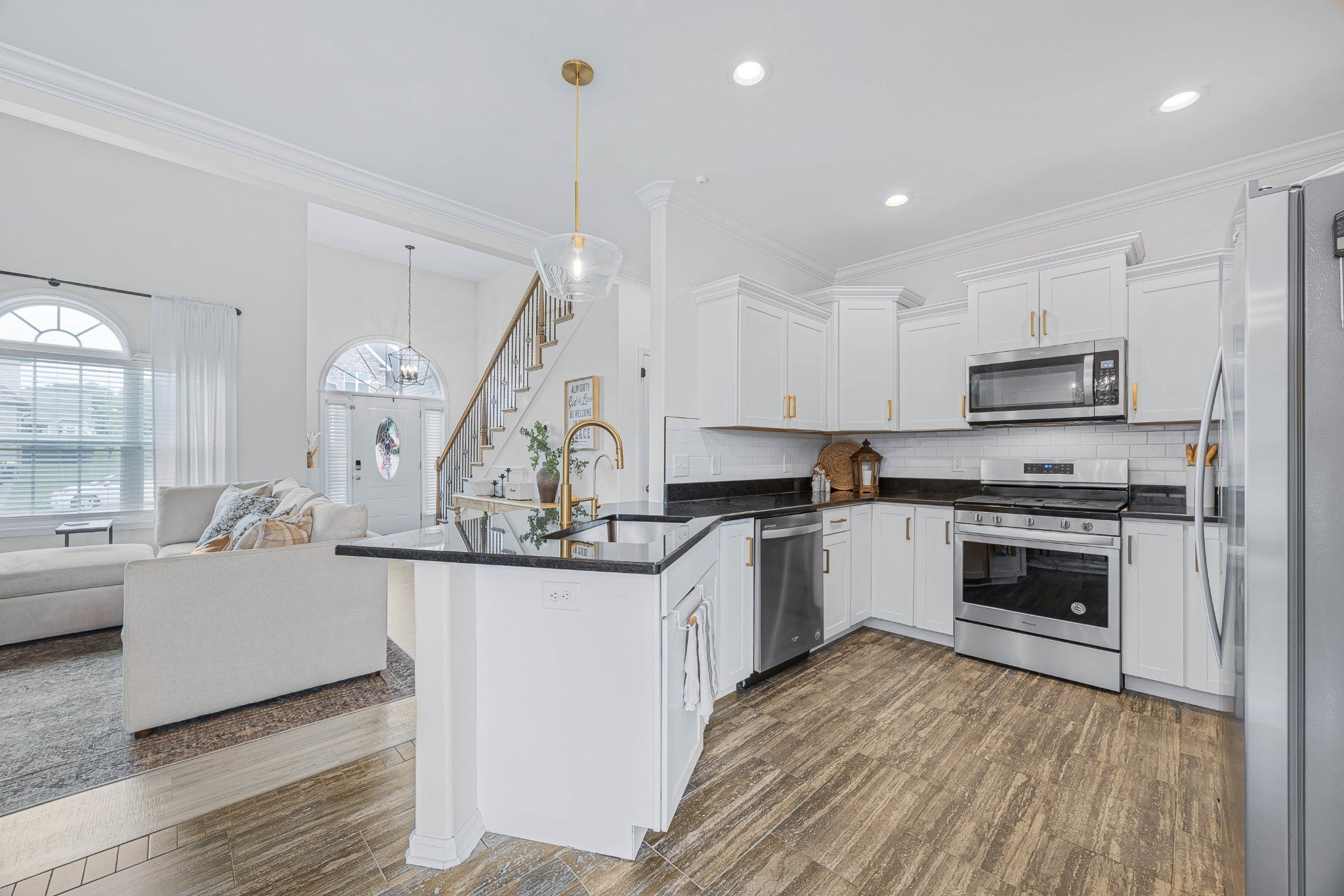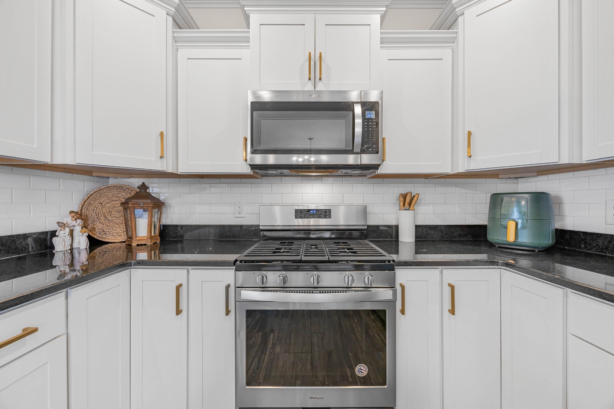 - Gas Range, Dishwasher, Disposal, Microwave, Refrigerator