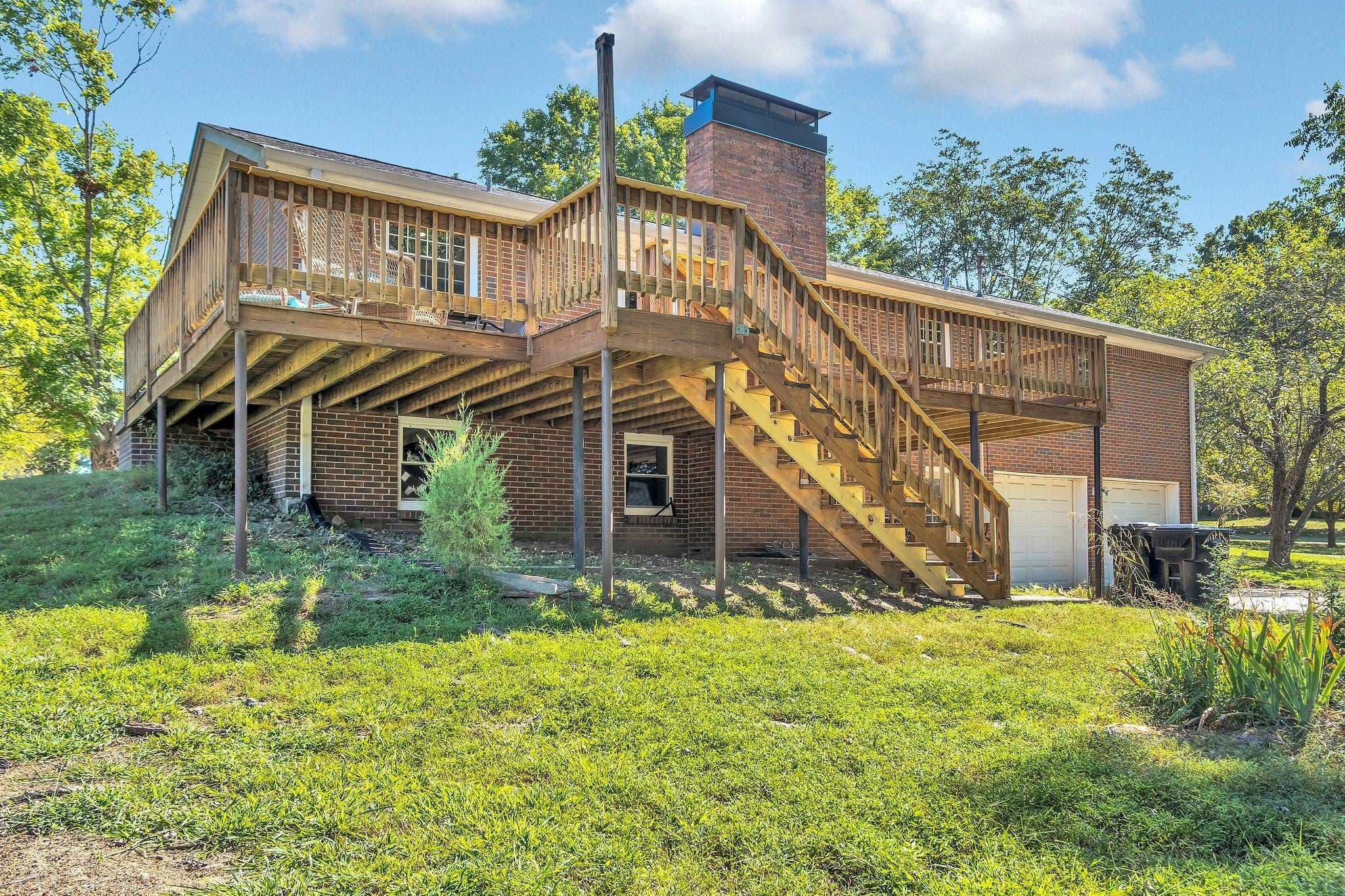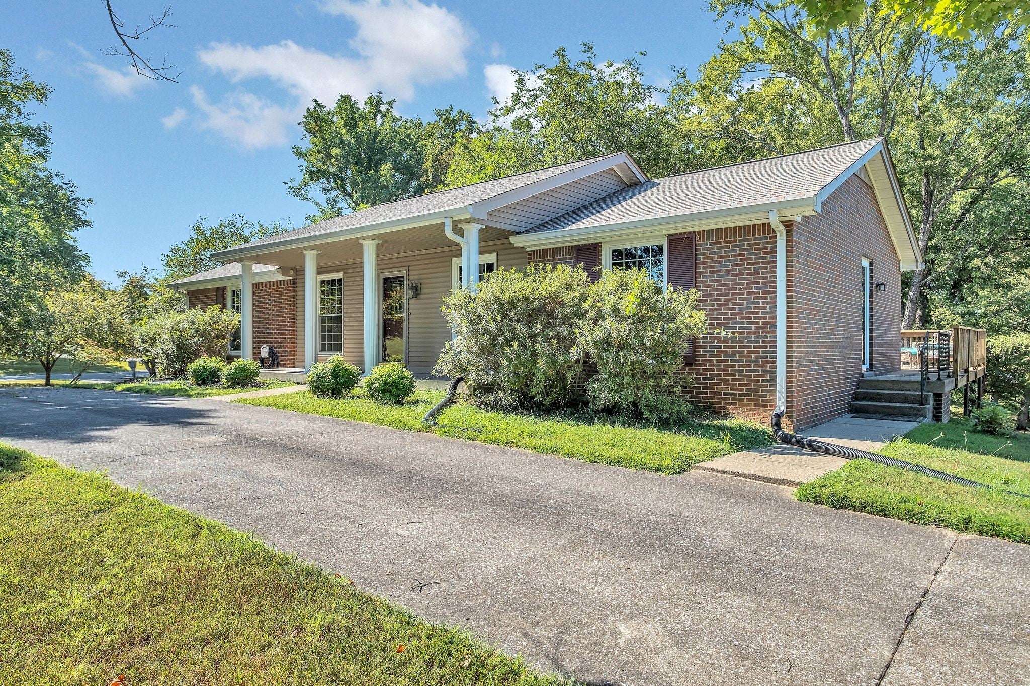 Remodeled ALL BRICK ranch with a NEW ROOF on a FINISHED BASEMENT with a 2 car garage located on a beautiful CORNER lot with lots of mature trees and 2 driveways. Great opportunity to own your first home with INCOME OPPORTUNITY or IN-LAW SUITE in the finished basement with it's own entrance, full set up kitchen, full bath, washer & dryer, living room with FIREPLACE, bedroom and office ( could make a 2nd bedroom ). The main level has 3 spacious bedrooms with 2 full baths, a huge living room, and a KEEPING ROOM with FIREPLACE room off the eat-in kitchen. New flooring thru-out with Tile floors in both baths, New lighting, SS fridge, SS dishwasher & New counters. Great outdoor living space on the COVERED front porch and HUGE 12X34 deck. Lots of storage upstairs in the 3x12 storage closet and in the basement with STORM SHELTER plus a STORAGE SHED. The basement is still under construction, the pictures will be updated next week when it is finished if it is still available.