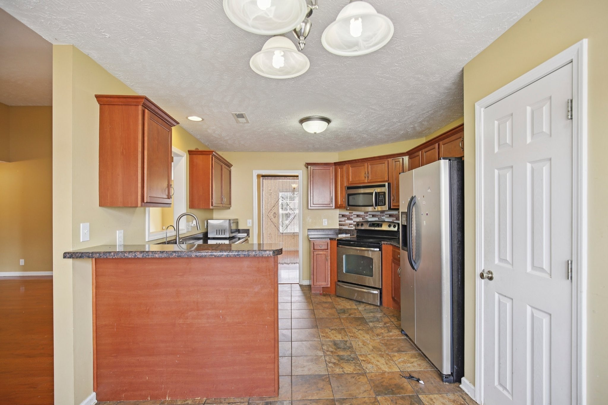 - Electric Range, Dishwasher, Microwave, Refrigerator