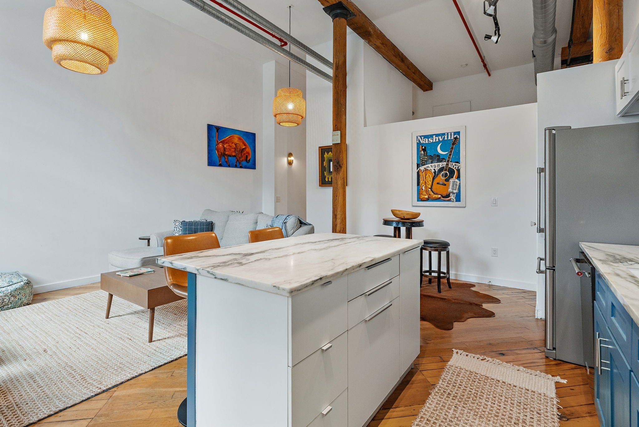 Historic Charm Meets Modern Style at Werthan Lofts! Step into this fantastic 1-bedroom unit in one of Nashville’s most beloved historic buildings. Soaring ceilings and oversized factory windows fill the space with natural light, while exposed brick walls and designer lighting bring modern sophistication to the building’s industrial roots. You will love the original heart of pine wood floors and character that was thoughtfully preserved when this 1800s textile factory was converted to residences. The open kitchen features marble countertops, a pantry, and thoughtful updates throughout. The spacious bedroom offers two large closets—a rare find in loft living. You'll love the balcony--a highly sought-after feature at Werthan that rarely becomes available—and offers the perfect spot for morning coffee or evening relaxation. Located in the heart of walkable Germantown, Werthan Lofts offers gated parking, secure buildings, and is an amenity-rich environment with pools, grill areas, bocce, fitness center, dog runs, community courtyards and more—all just moments from Nashville’s best dining, shopping, a new dog park, the famed Nashville Farmer's Market, Bicentennial Park for Music and Movies, Nashville Sounds Baseball Stadium and all of Downtown Nashville! Rental permits are available on a rolling waitlist basis. The LOW HOA fee of $286/mo covers all of these amenities, plus exterior maintenance, trash and your water utility bill. This is a great value for the list price, particularly in coveted Germantown! ***This unit is not in the building facing Rosa Parks, but is tucked in the back in the perpendicular building, offering more quiet and privacy!